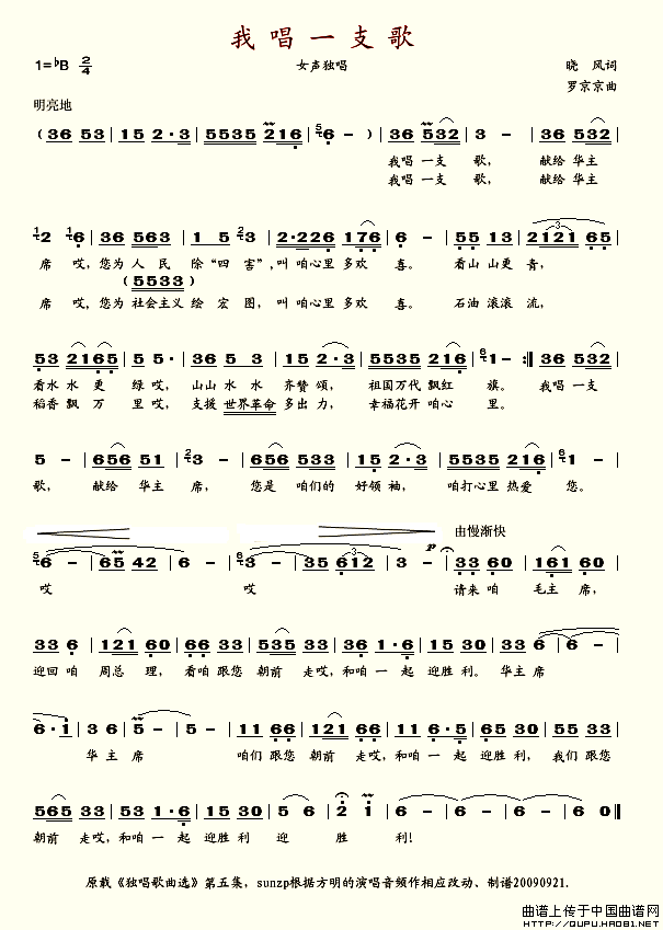 我唱一支歌相关五线谱