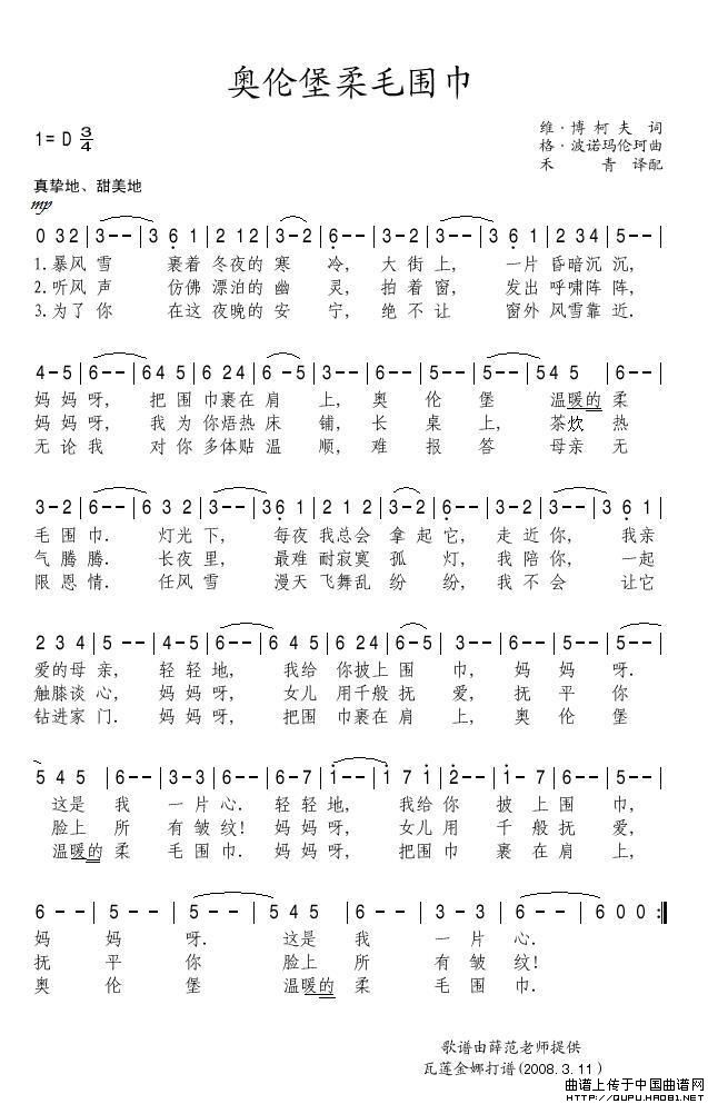 奥伦堡柔毛围巾(俄)相关五线谱