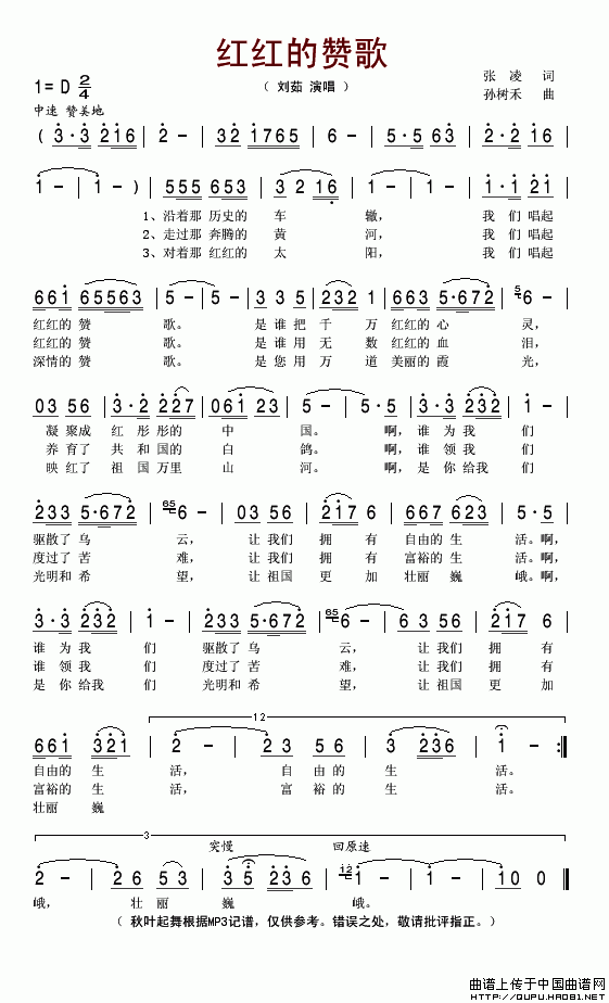 红红的赞歌相关五线谱