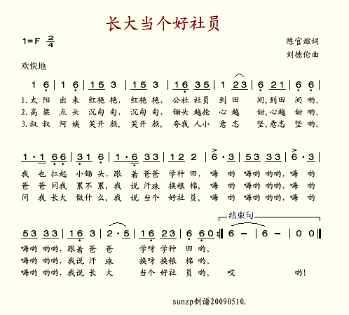 长大当个好社员相关五线谱