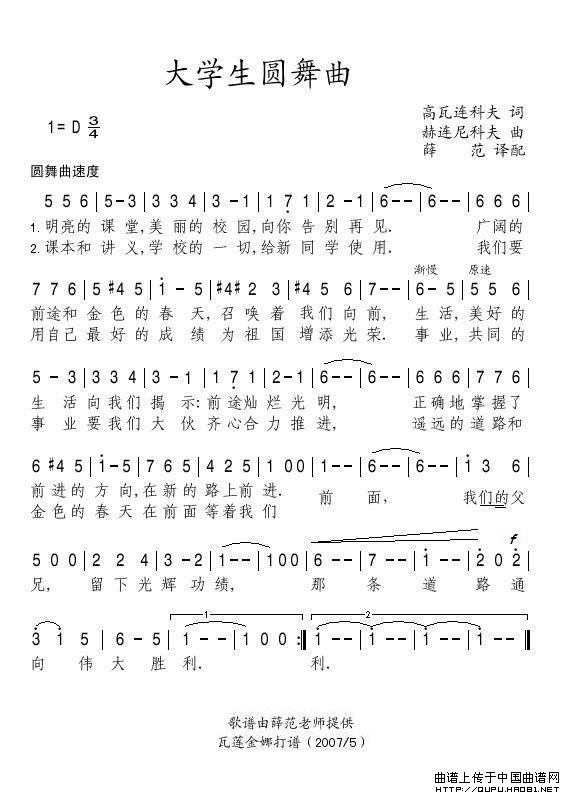大学生圆舞曲(俄)相关五线谱