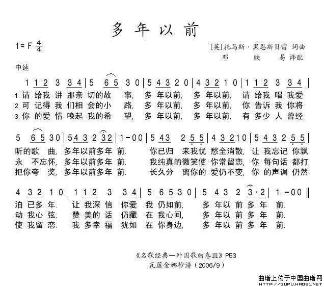 [英] 多年以前相关五线谱