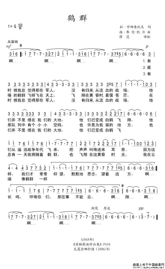 鹤群(俄)相关五线谱