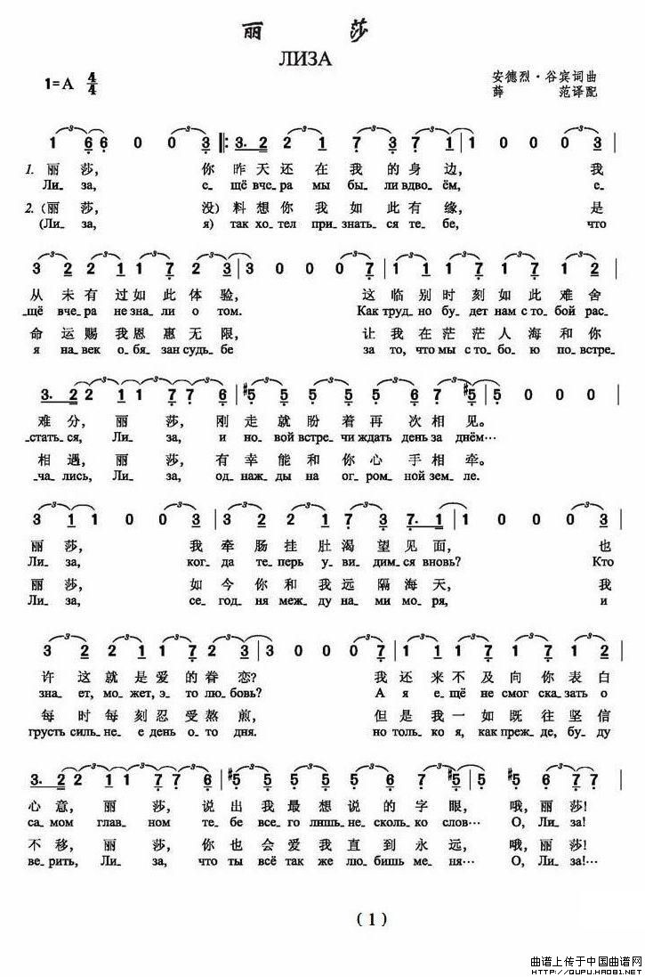 丽莎(俄)相关五线谱