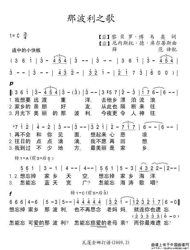 那波利之歌(意)相关五线谱
