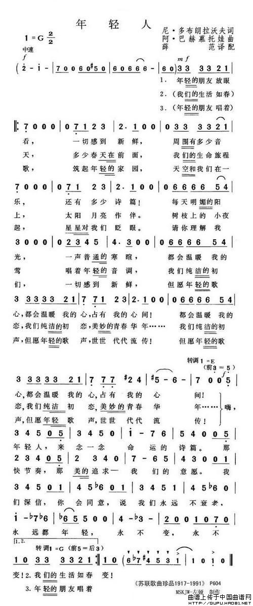 年轻人(前苏联)相关五线谱