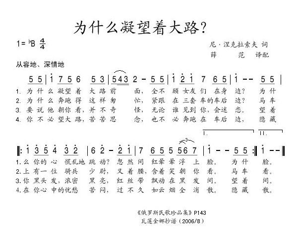 [前苏联] 为什么凝望着大路相关五线谱