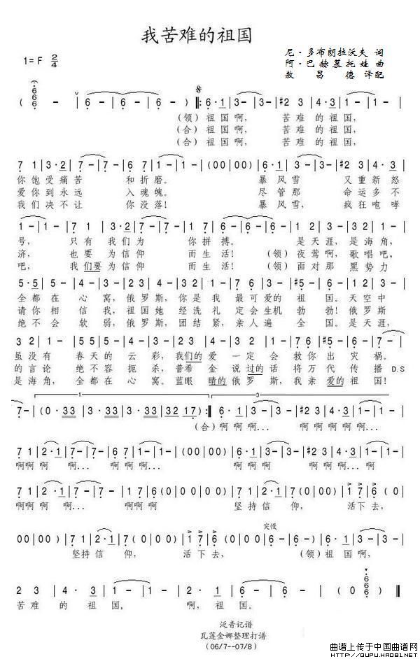 我苦难的祖国(俄)相关五线谱