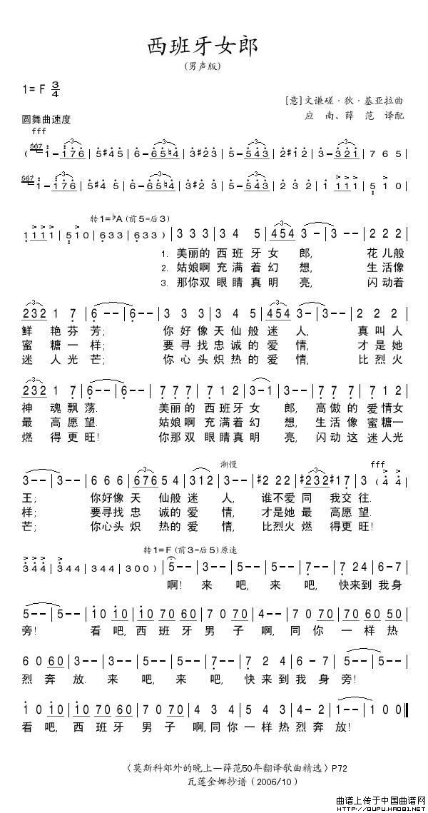 西班牙女郎(意)相关五线谱