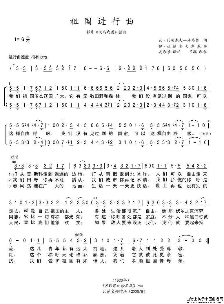 [前苏联] 祖国进行曲相关五线谱