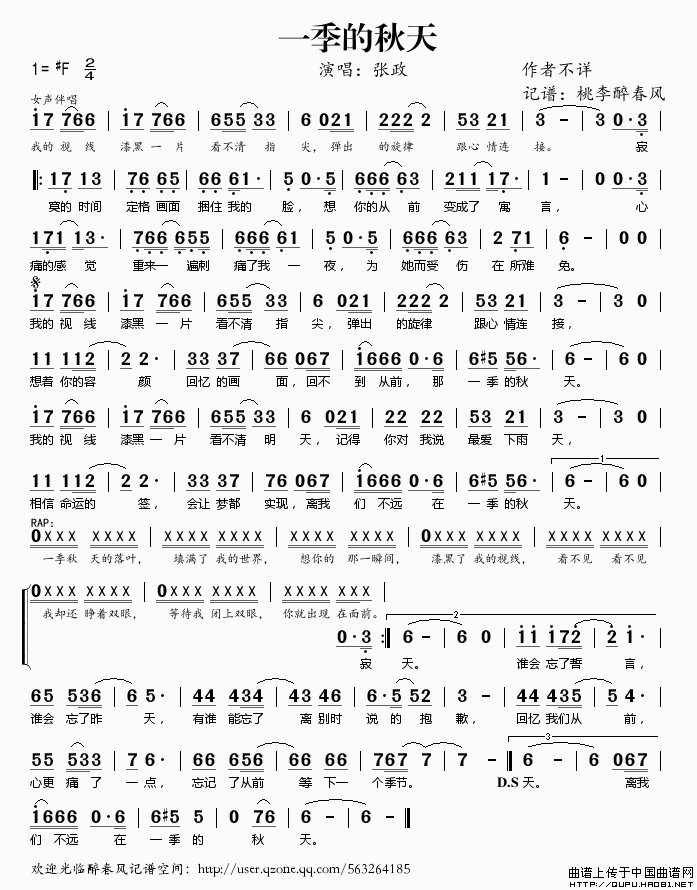 一季的秋天相关五线谱