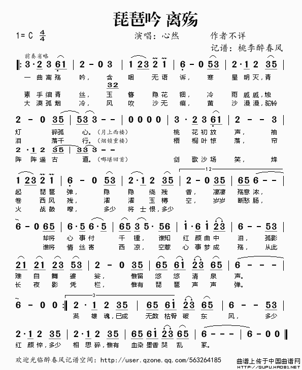 琵琶吟 离殇相关五线谱