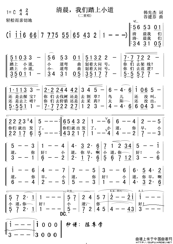 谷建芬曲谱推荐愿你心中常驻芳华蓝蓝泉州湾新学堂歌:长相思绿叶对根的情意新学堂歌:春晓采蘑菇的小姑娘〔梦之旅合唱组合〕(男女三声部重唱)貂蝉已随清风去/貂蝉之歌(电视连续剧《三国演义》插曲)思念(谷建芬作曲版)歌声与微笑(二声部合唱)采蘑菇的小姑娘烛光里的妈妈清晨,我们踏上小道(春色制谱/记谱)采蘑菇的小姑娘世界需要热心肠(乔羽词 谷建芬曲)今天是你的生日(老人适用)历史的天空谷建芬新学堂儿歌系列:读唐诗歌声与微笑明日歌([清]钱鹤滩词 谷建芬曲)貂禅已随清风去(电视剧《三国演义》插曲)