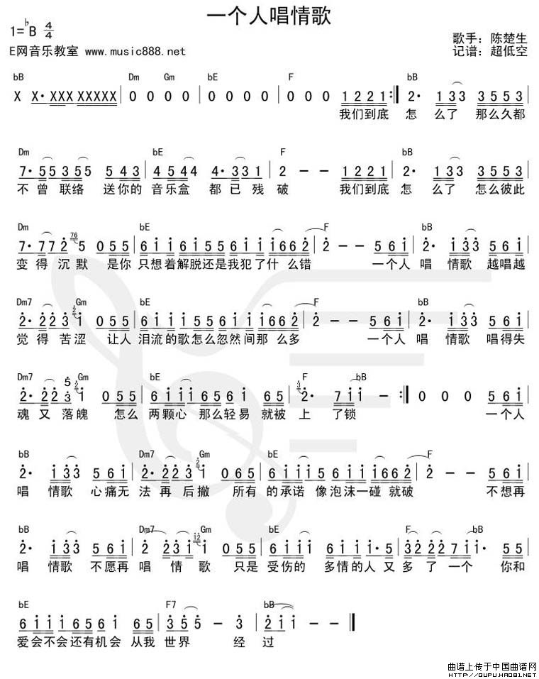 一个人唱情歌相关五线谱