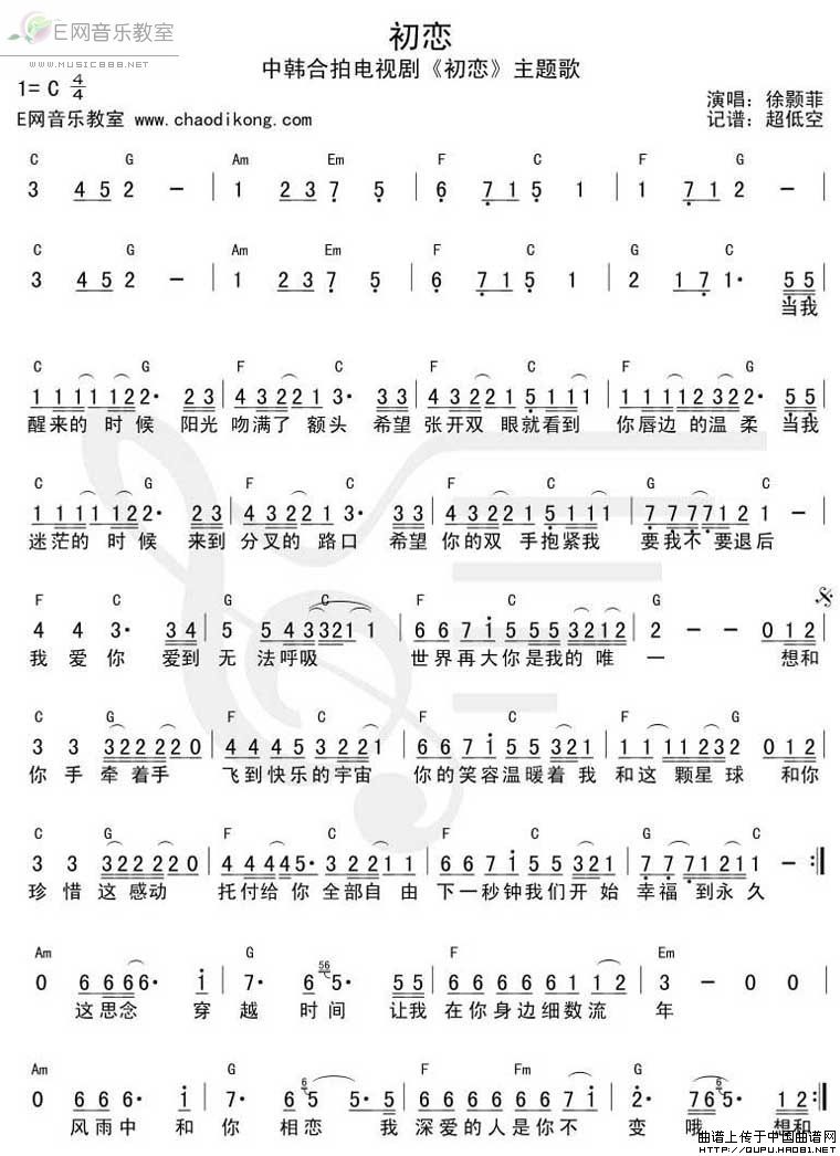初恋(同名电视剧主题曲)相关五线谱