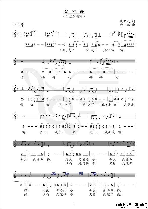 舍不得(线、简谱混排版)