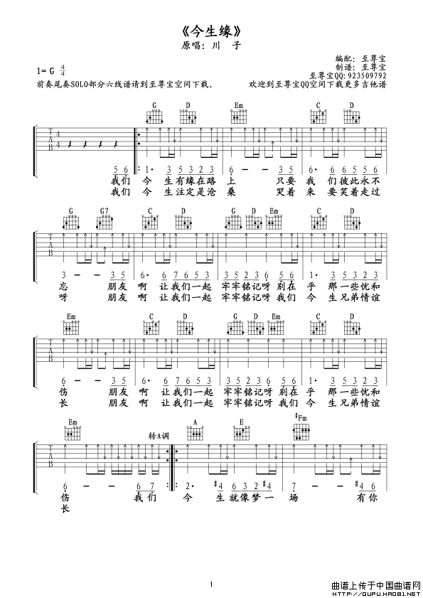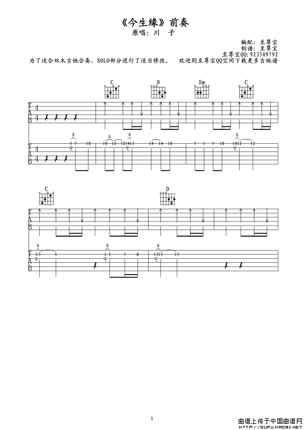 今生缘(带前奏尾奏、双吉他合奏谱)