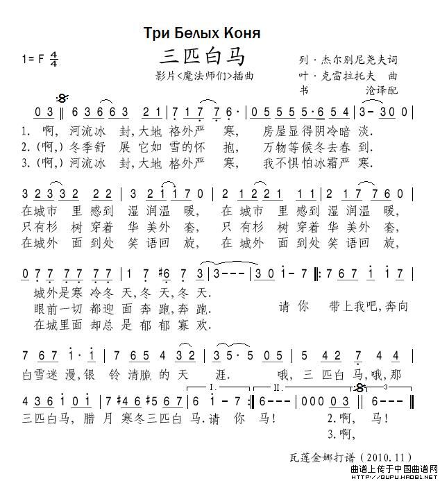 三匹白马(俄)相关五线谱