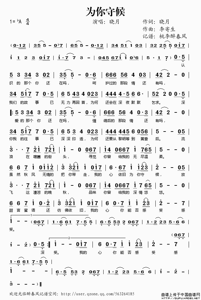 为你守候(晓月词 李寄生曲)