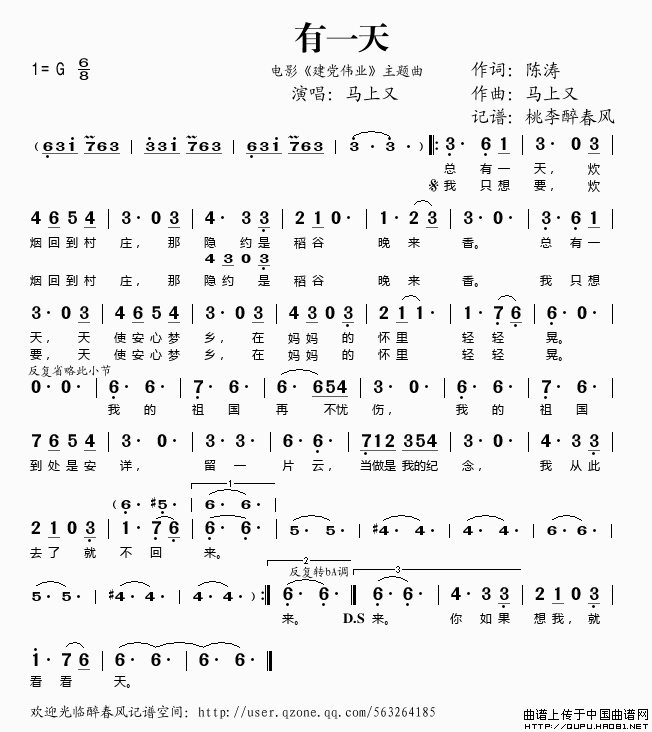 有一天(电影《建党伟业》主题曲)相关五线谱