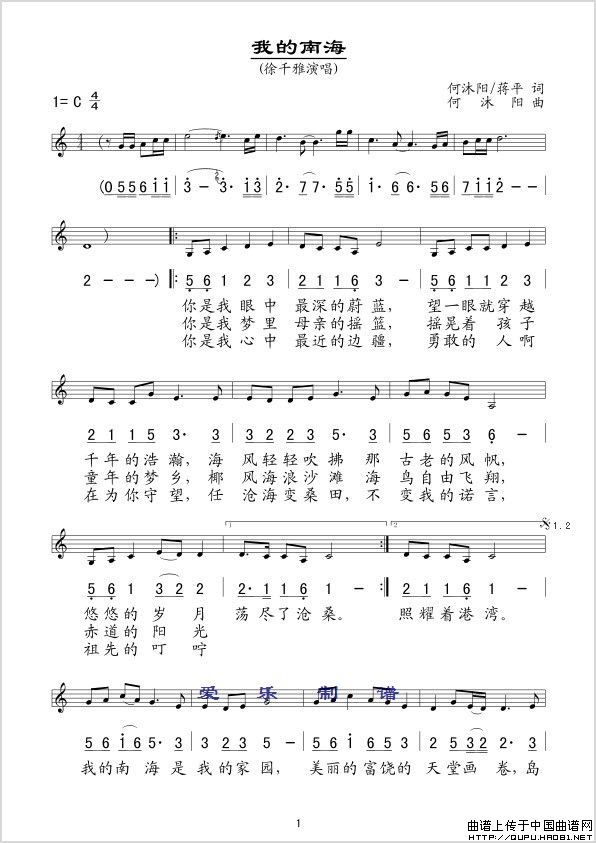 何沐阳曲谱推荐大东北(化方词 何沐阳曲)木棉红(亦弛记谱)可可西里(何沐阳词曲)中华民族(何沐阳 词曲)我爱你长沙坐上火车去拉萨月亮之上(正谱)火苗(何沐阳词 何沐阳曲)彩云之南中秋的月亮(线简谱混排版)(何沐阳词曲)坐上火车去拉萨(线、简谱混排版)心弦为谁拨响(《记住乡愁》片尾曲)黄山之约彩云之南(何沐阳 词曲)请你常到海南来在你爱的牵挂里(陈道斌词 何沐阳曲)彩云之南想你想到草绿了彩云之南(架子鼓、简谱+鼓谱)最美的山
