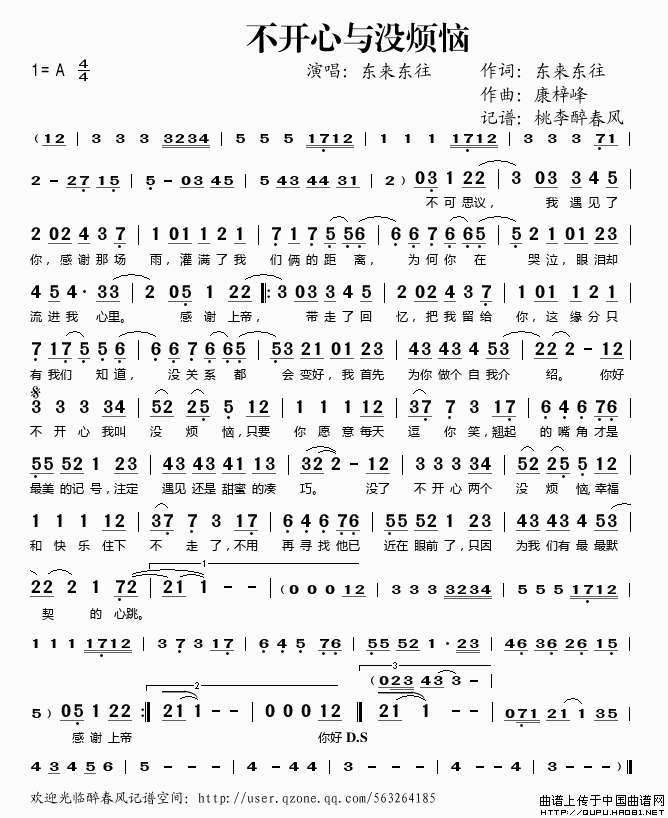 不开心与没烦恼相关五线谱