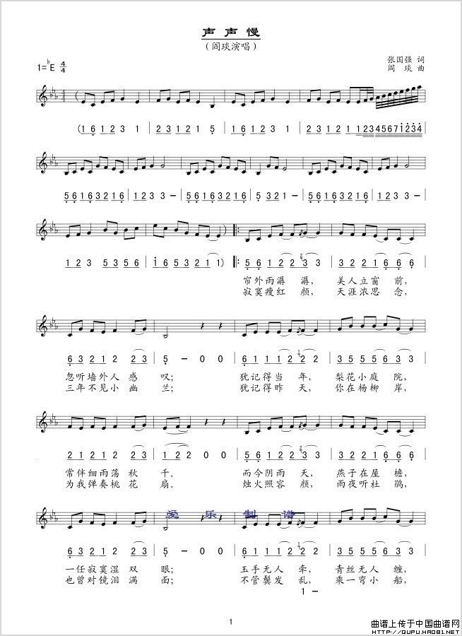 声声慢(线、简谱混排版)