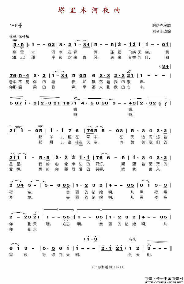 塔里木河夜曲相关五线谱