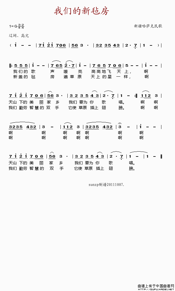 我们的新毡房相关五线谱