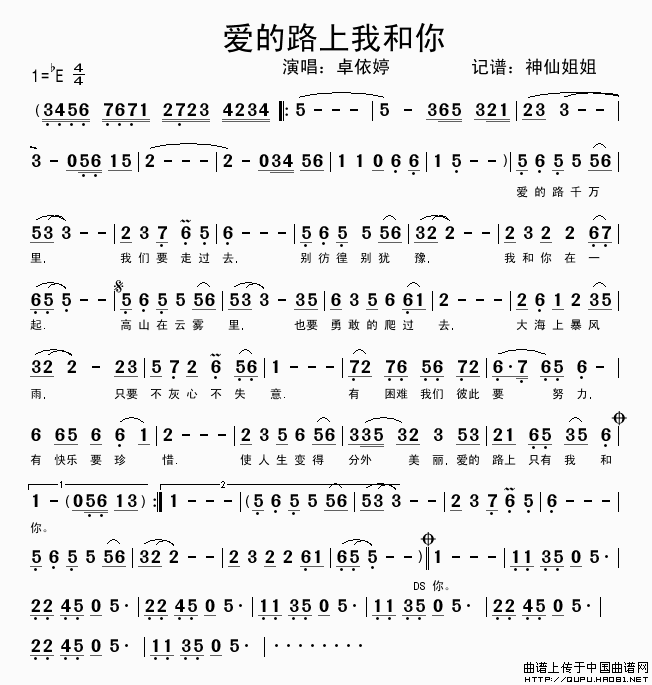 爱的路上我和你相关五线谱