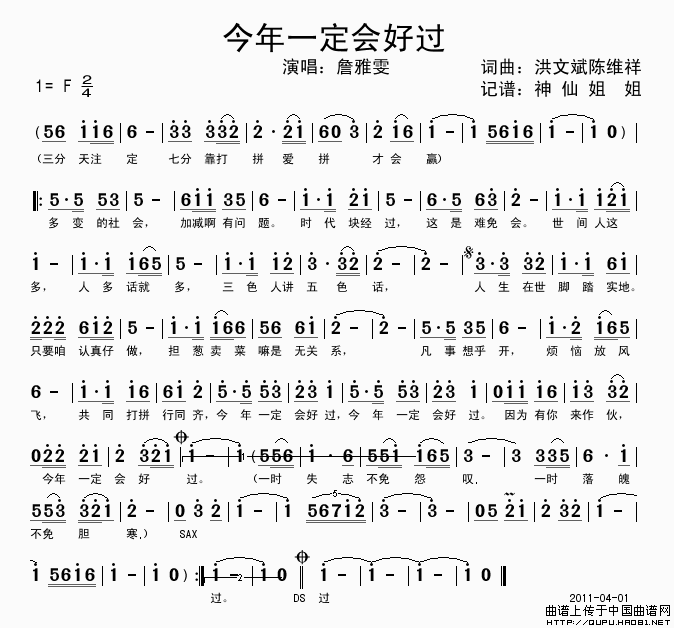今年一定会好过(闽南语演唱)相关五线谱