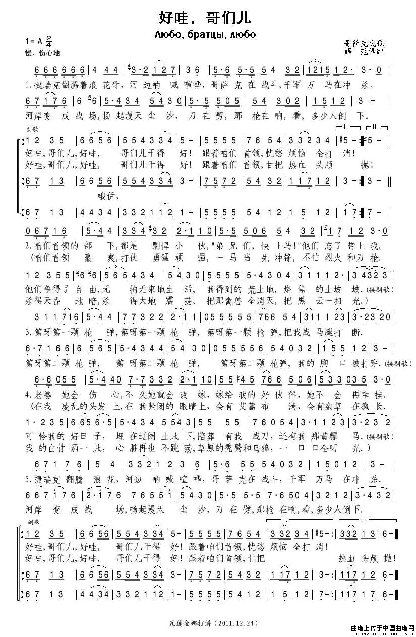 好哇,哥们儿(哥萨克)相关五线谱