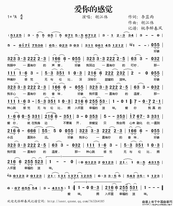 爱你的感觉相关五线谱