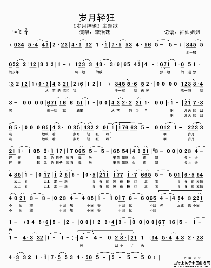 岁月轻狂(电影《岁月神偷》主题歌)相关五线谱