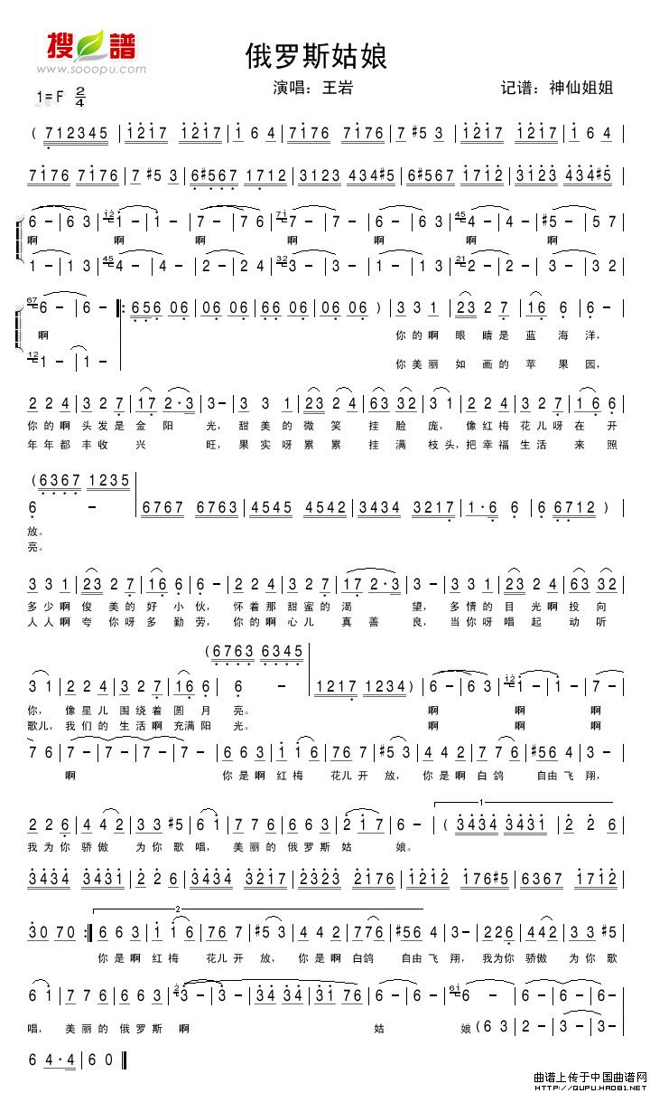 俄罗斯姑娘相关五线谱