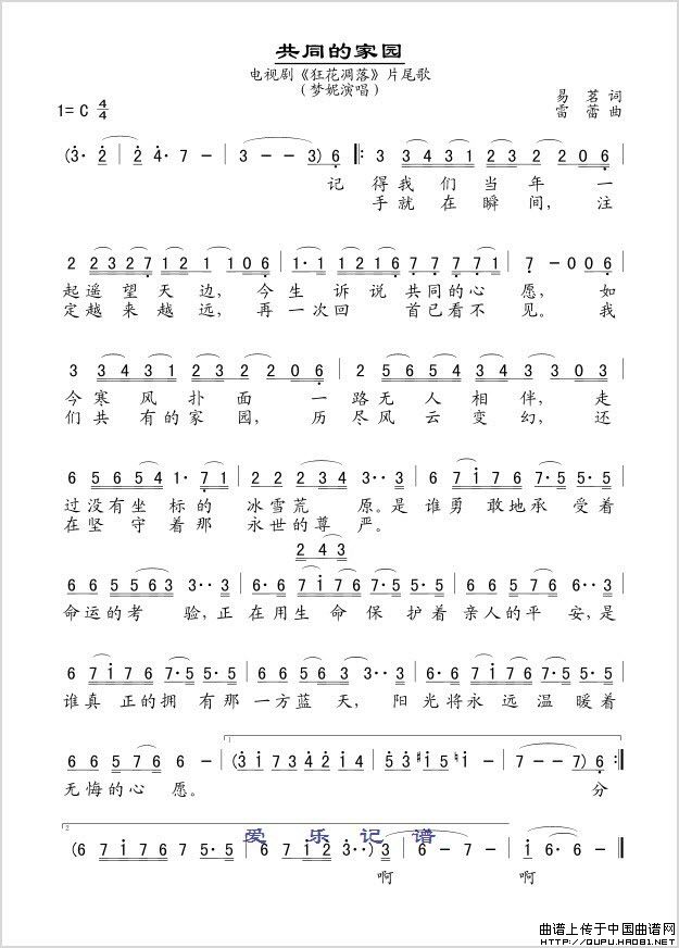 雷蕾曲谱推荐从头做起(电视剧《上海一家人》插曲)为什么我泪水成行好人一生平安(易茗词 雷蕾曲)青青岩石一颗草电视剧《老娘泪》片尾曲河水流不断(《道北人》主题曲)好人一生平安〔梦之旅合唱组合〕(男女三声部重唱)渴望好人一生平安(电视剧《渴望》插曲)军歌金曲:少年壮志不言愁上大路少年壮志不言愁渴望(二胡曲谱)还在寻找你(电视剧《九九归一》片尾歌)文化广场圆舞曲相信那一天(电视剧《上海一家人》插曲)红槐花(同名电视剧主题歌)地久天长(电视连续剧《潘玉良》主题歌)无题(电视剧《鲁迅与许广平》片尾歌)信念(韩伟词 雷蕾曲)