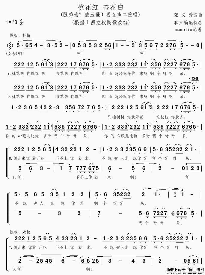桃花红 杏花白(男女声二重唱)相关五线谱