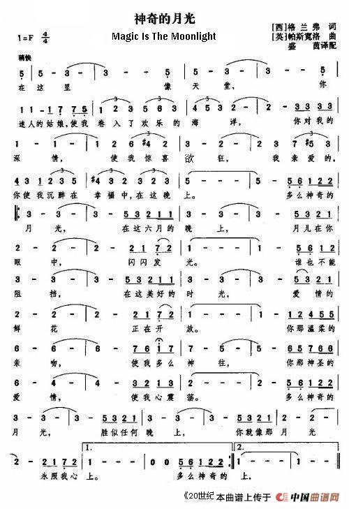 神奇的月光相关五线谱