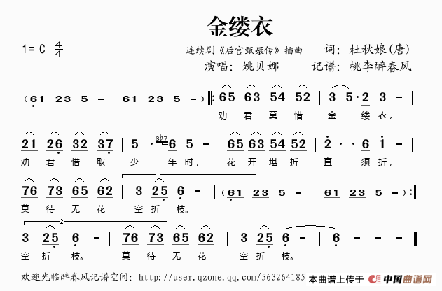 金缕衣(《后宫甄嬛传》插曲)相关五线谱