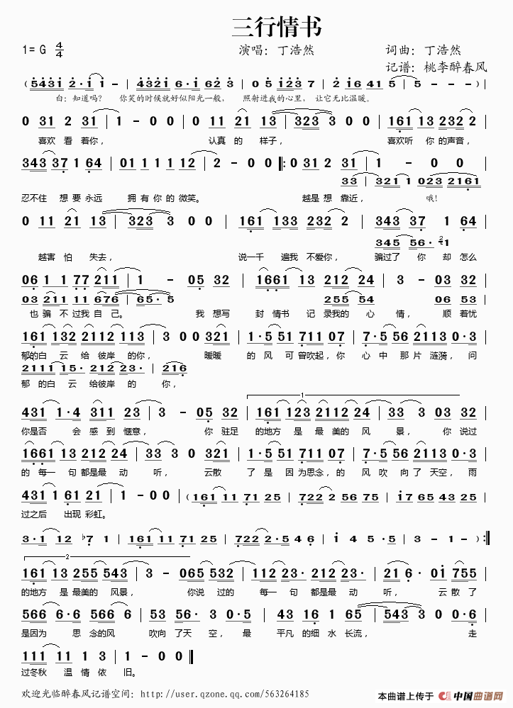 三行情书相关五线谱