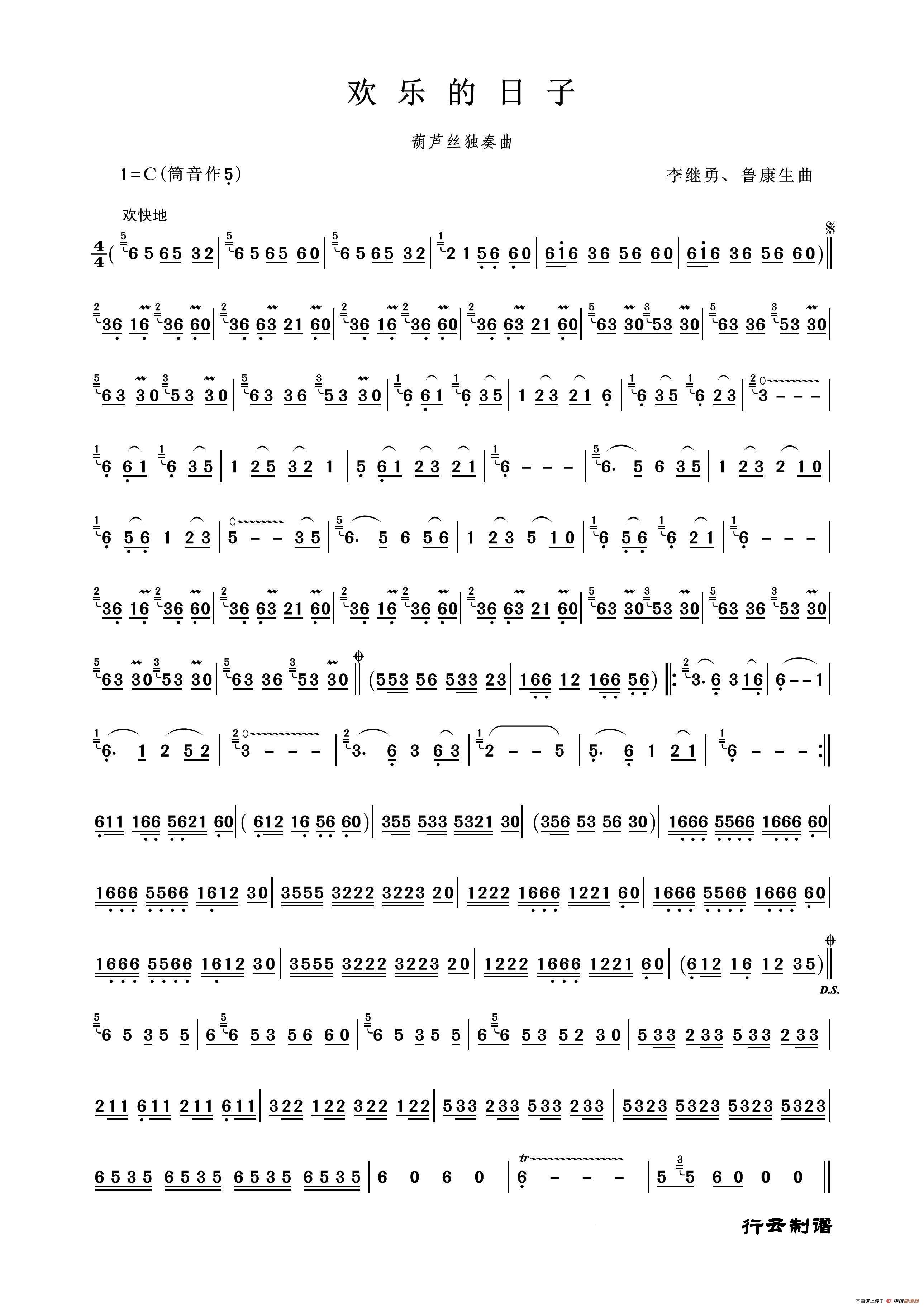 欢乐的日子(葫芦丝独奏)相关五线谱