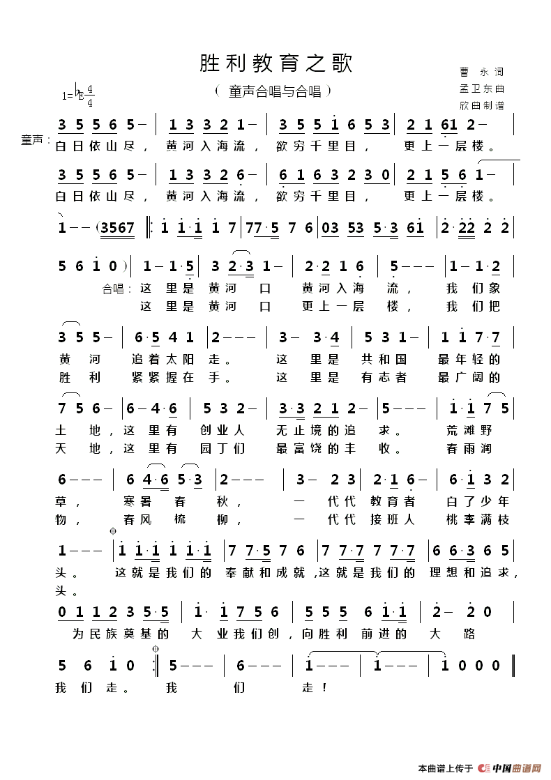 孟卫东曲谱推荐新时代之歌35同一条河(双谱)我们就是中国胜利旗帜上不落的辉煌长城风雨衣友善之情50含着泪,请举起猎枪(双谱)((歌剧《红河谷》选段))永恒的爱恋(薛锡祥词 孟卫东曲)袋鼠护送员(少儿歌曲)同一首歌(正谱 荣光 玉勇配伴奏)英雄(宋小明词 孟卫东曲)中国圆舞曲又回太行永恒的爱恋(薛锡祥词 孟卫东曲)鸿雁(无伴奏合唱)(电视剧《东归英雄》片尾曲)49这里不是你的家(双谱)(歌剧《红河谷》选段)快乐的风(曹勇词 孟卫东曲)今夜无眠西部,让我走近你丝路彩虹(王晓岭词 孟卫东曲)