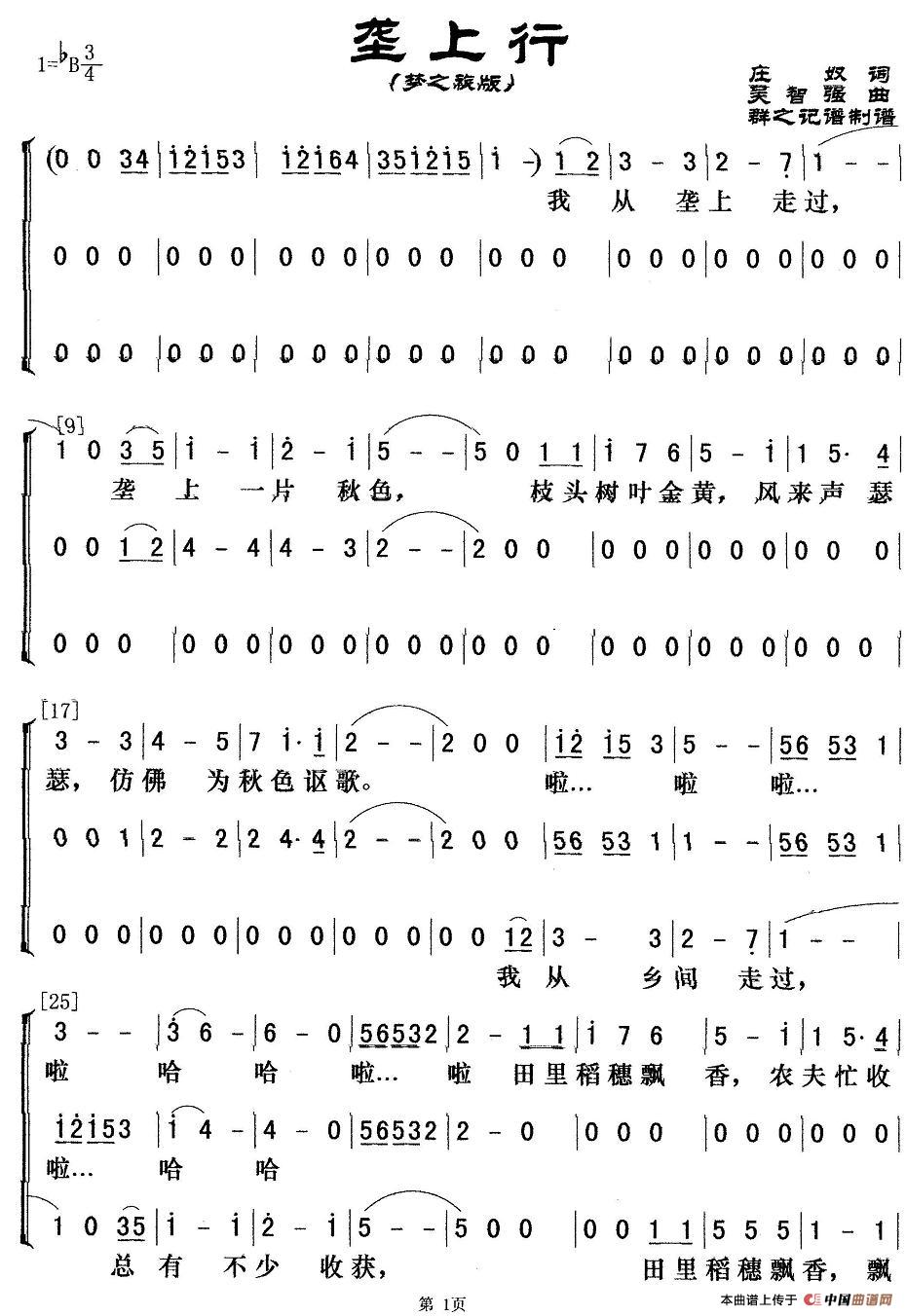 垄上行(梦之旅演唱版)相关五线谱