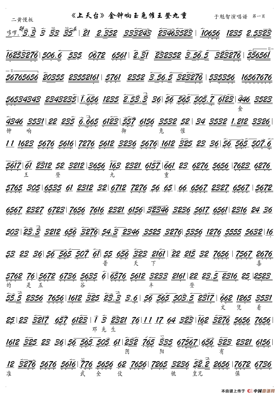 《上天台》金钟响玉兔催王登九重(京剧《上天台》选段,京胡谱)