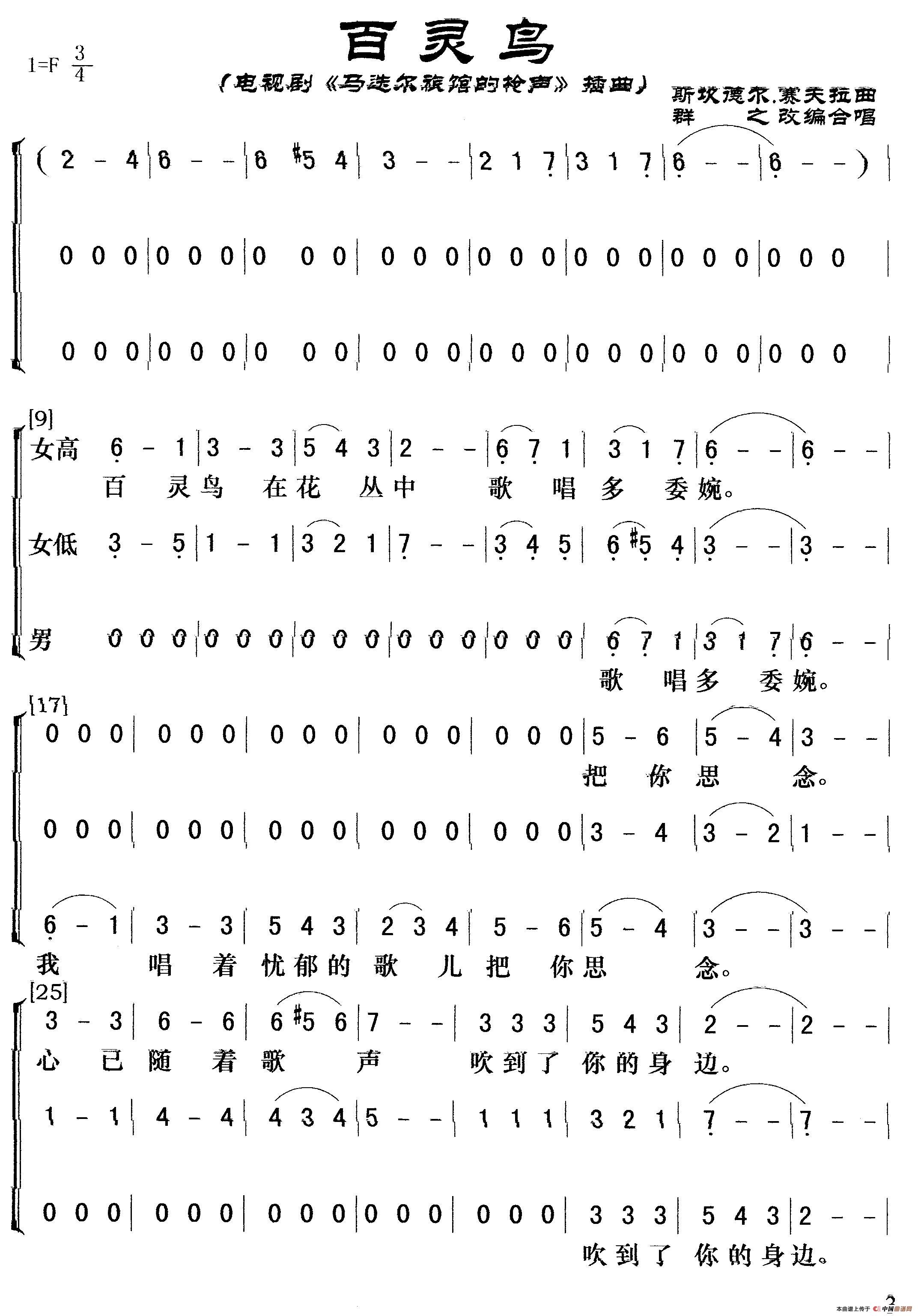 百灵鸟(电视剧《马迭尔旅馆的枪声》插曲)相关五线谱