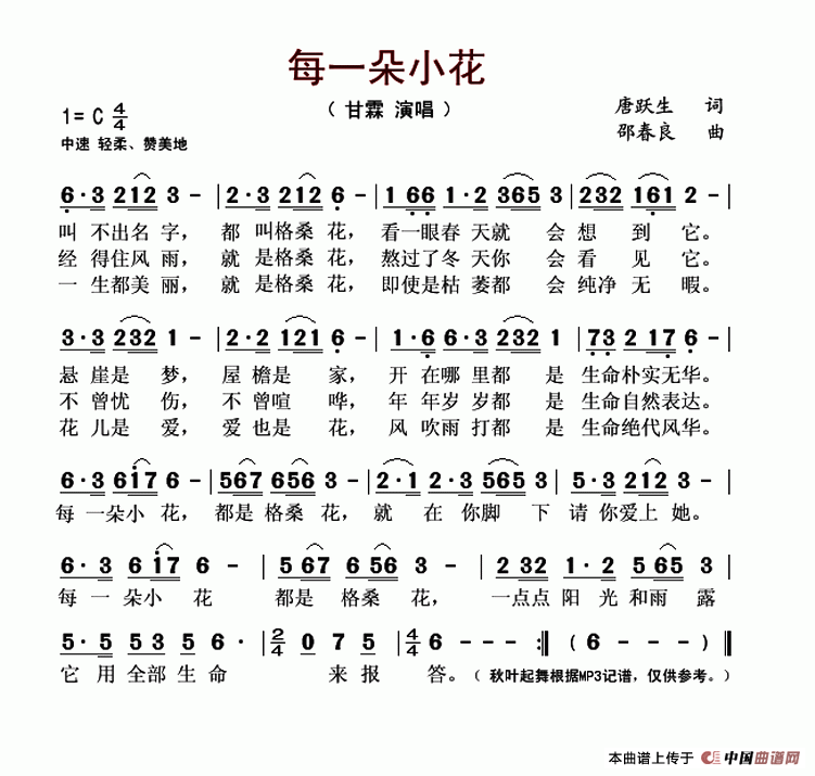 每一朵小花相关五线谱