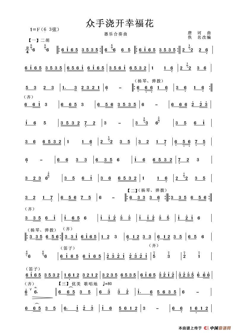 众手浇幸福花(器乐合奏曲)相关五线谱
