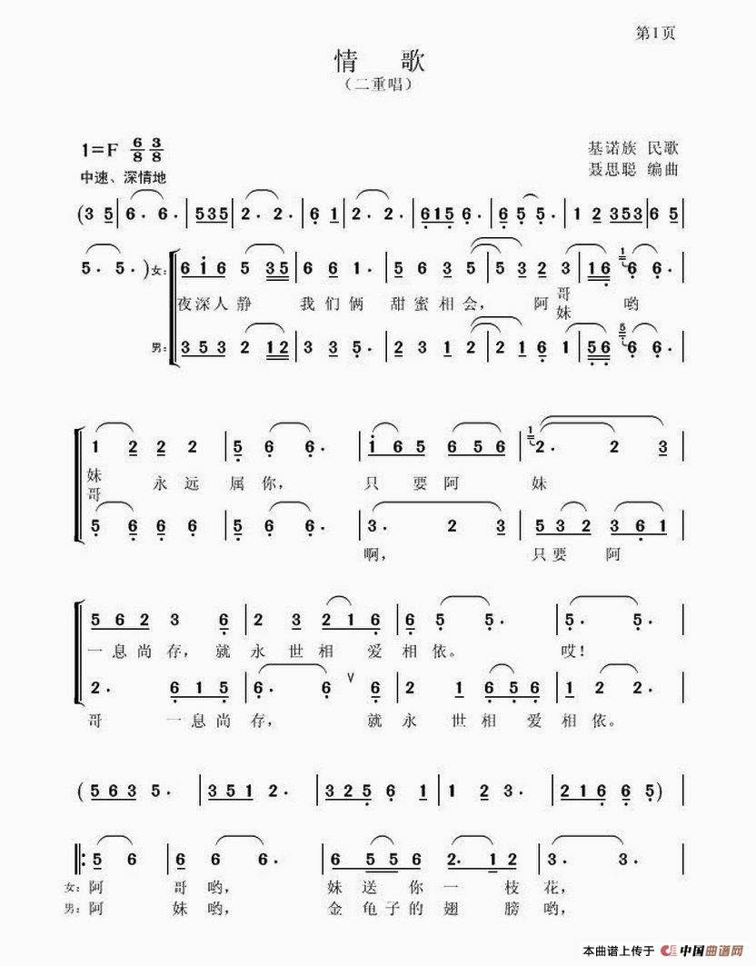 情歌(基诺族民歌 )相关五线谱