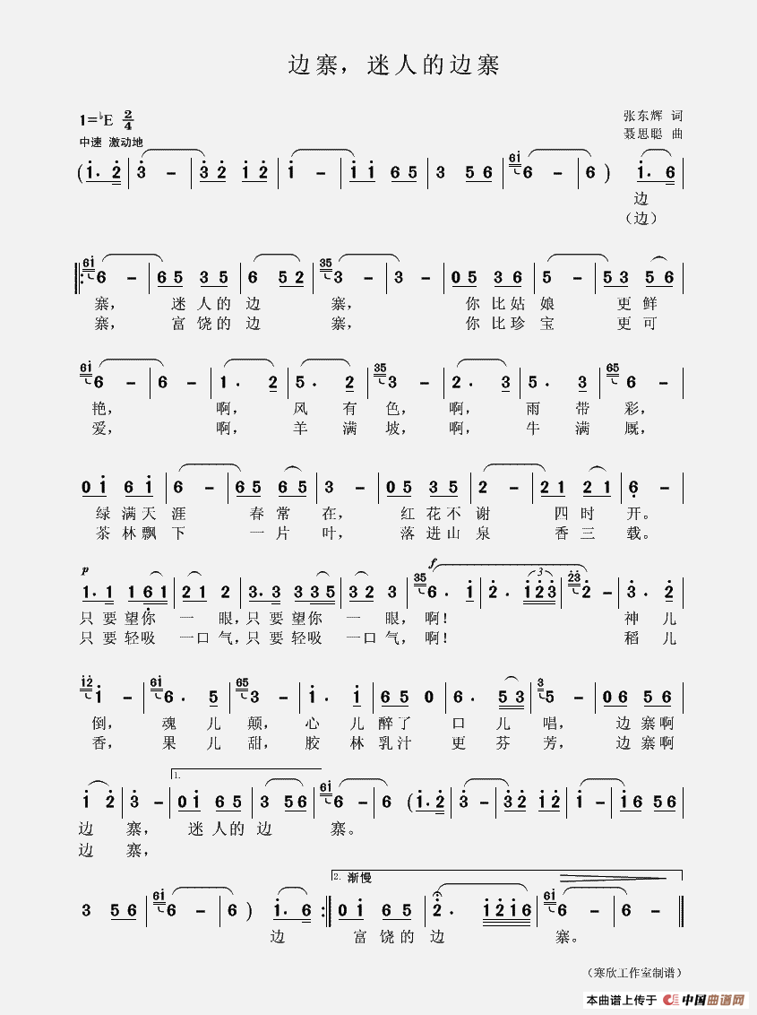 聂思聪曲谱推荐阿妹等哥山那边睡美人等哥滇池边今日喜相逢铭记(缅怀远征军之歌)丰收忙兰花赋(毛诗奇词 聂思聪曲)乡恋(筝谱)山中的小蓝花金色的坝子,金色的海洋美丽的小卜少哈尼姑娘的银铃(二胡谱)尊师重教谣六秩芳华颂祖国诗心与禅意《赶摆晚归》滇池落霞他留人家的火塘飘吧,孔明灯我来到孔雀的故乡大年夜