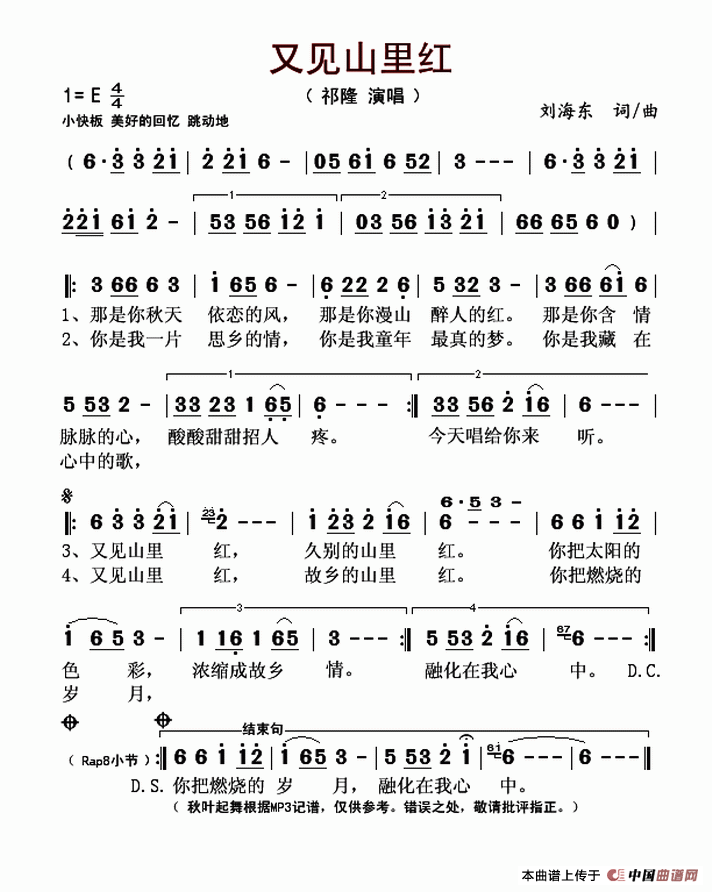 刘海东曲谱推荐花前月下(刘海东词曲)酒醉的蝴蝶相信我没有错流泪的飞蛾当我打开手机红尘里花前月下鸟儿对花说又见雪花飞不是所有(刘海东词曲)都市情缘山里红了一曲红尘哥也很哇塞一把小雨伞又见雪花飞(刘海东词 刘海东曲)等你娶我对面的小哥哥一吻红尘(刘海东词曲)如果就这么老了
